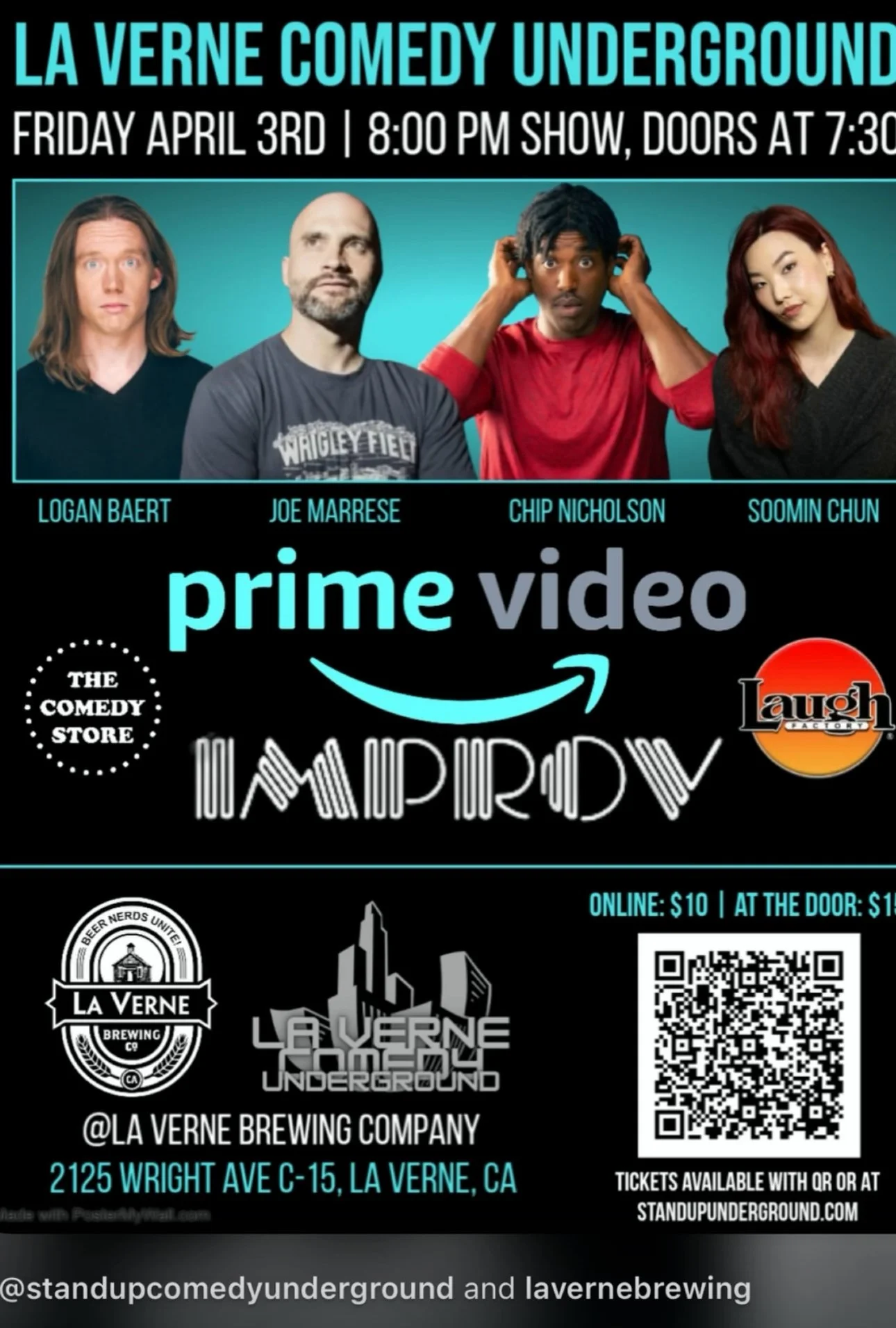 Back to All Events COMEDY UNDERGROUND Friday, April 3, 2026 8:00 PM 9:00 PM La Verne Brewing Company 2125 Wright Avenue La Verne, CA, 91750 United States (map) Google Calendar ICS GET TICKETS CLICK HERE